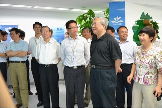 全國人大常委會副委員長路甬祥率(右三) 考察天聞數媒科技(北京)有限公司 |