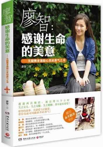 《廖智:感謝生命的美意》一書,記載了廖智作為一個失去雙腿的舞者對生命的思索和對夢想的追尋的勵志經歷。此書由中南傳媒旗下的博集天卷和湖南文藝出版社精心制作,排版精美,有大量廖智在生活和排練中的真實照片,悲愴的舞姿震撼人心。此書上市后被稱為“激勵心靈的勇氣之書”,大量廖智的內心獨白感人至深,獲得柴靜、楊瀾、撒貝寧、魯豫等眾多名人的推薦。