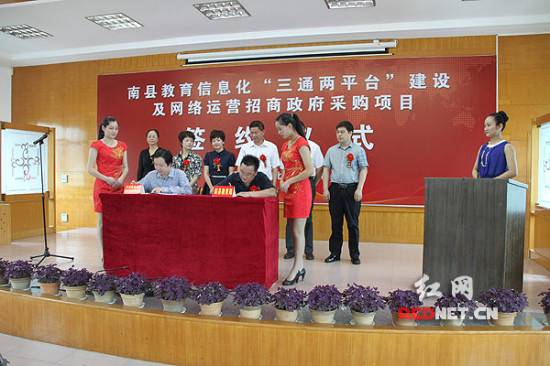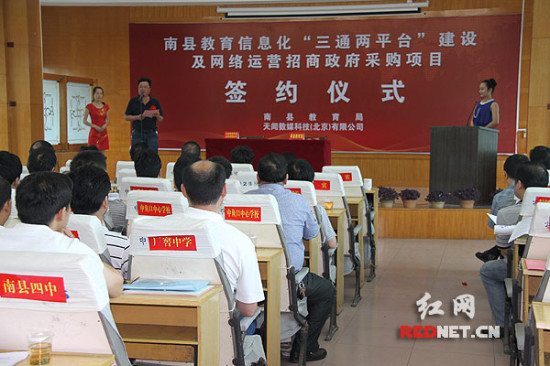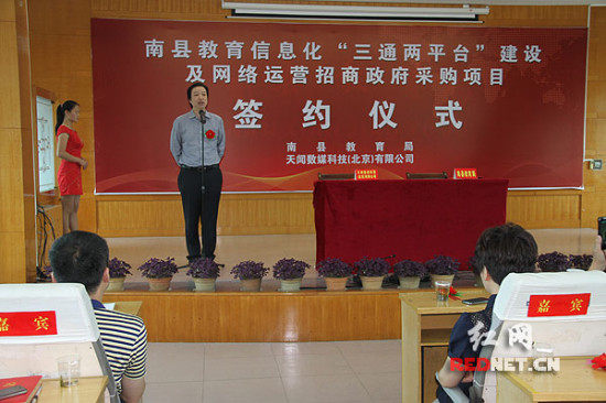 6月4日,湖南益陽市南縣教育局大會議室座無虛席,南縣教育局與天聞數媒科技(北京)有限公司就教育信息化“三通兩平臺”建設及網絡運營簽訂了合作協議。根據協議,天聞數媒科技(北京)有限公司在合約簽訂后的90個工作日內為南縣所有學校建成“三通兩平臺”,標志著南縣教育信息化即將跨入“高速時代”。