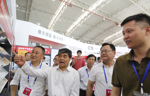國家新聞出版廣電總局副局長吳尚之在7月28日上午視察湖南展館時詳細了解了岳麓書社“四大名著”(名家演播版)的情況,他對這套圖書的出版表示肯定:“你們通過與新技術的融合,把‘四大名著’搞活了。讀者是多樣的,需要紙介質(zhì),也需要聆聽,你們這種融合發(fā)展做得很好。”