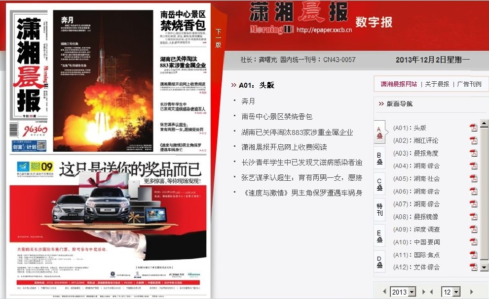 經(jīng)過為期三個月的公測,瀟湘晨報網(wǎng)(www.xxcb.cn)與數(shù)字報閱讀平臺正式全新上線。