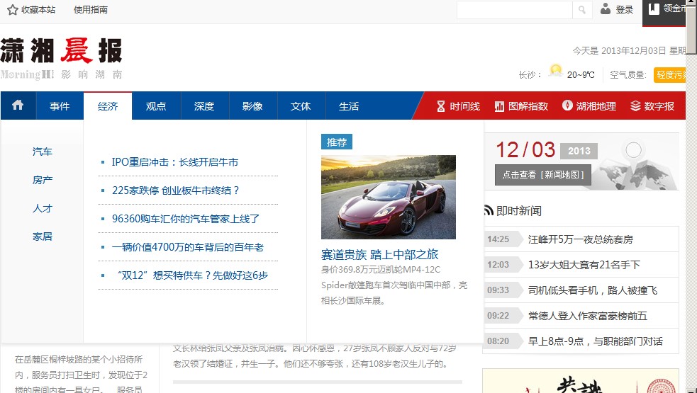 按照中南傳媒的戰(zhàn)略部署,瀟湘晨報今年將強力推出互聯(lián)網(wǎng)業(yè)務(wù)平臺,著手建立線上收費模式,售賣晨報數(shù)字版。瀟湘晨報網(wǎng)在內(nèi)容制造上立足于達到“三個第一”,即第一觀點,第一資訊,第一數(shù)據(jù)。除了常規(guī)的新聞頻道整合了瀟湘晨報系的新聞內(nèi)容外,網(wǎng)上讀者們還能看到新聞地圖、時間線、圖解指數(shù)、湖湘地理等特色頻道。