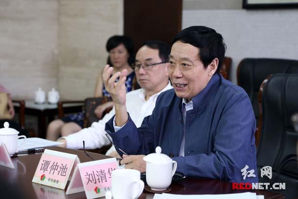 (湖南省文聯(lián)主席、詩人譚仲池講話。)