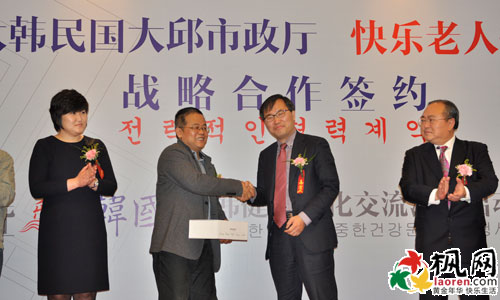 4月7日上午,大韓民國大邱市政廳和快樂老人報社在湖南長沙簽署戰略合作備忘,共同啟動“樂游韓國——中韓健康文化交流活動”出席簽字儀式。快樂老人報旗下美時美刻國際旅行社和韓國POLY VISION集團公司、韓國國際豪華旅行社共同舉辦這一健康文化交流項目。湖南快樂老人產業公司首個海外養生基地也正式落戶韓國大邱市。